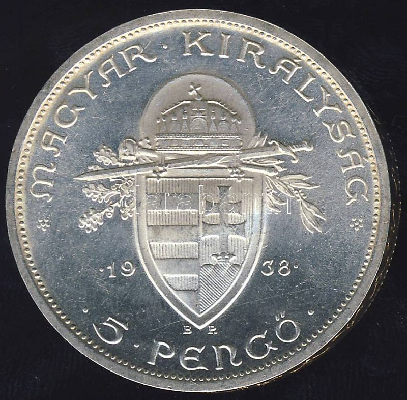 1938. 5P Ag "Szt. István" T:1/2 https://www.darabanth.com/hu/76-Gyorsarveres/76.0/Numizmatika/Magyar-es-magyar-verdejelu-fem-es-ezustpenzek~215/1938-5P-Ag-Szt-Istvan-T12~II152666
