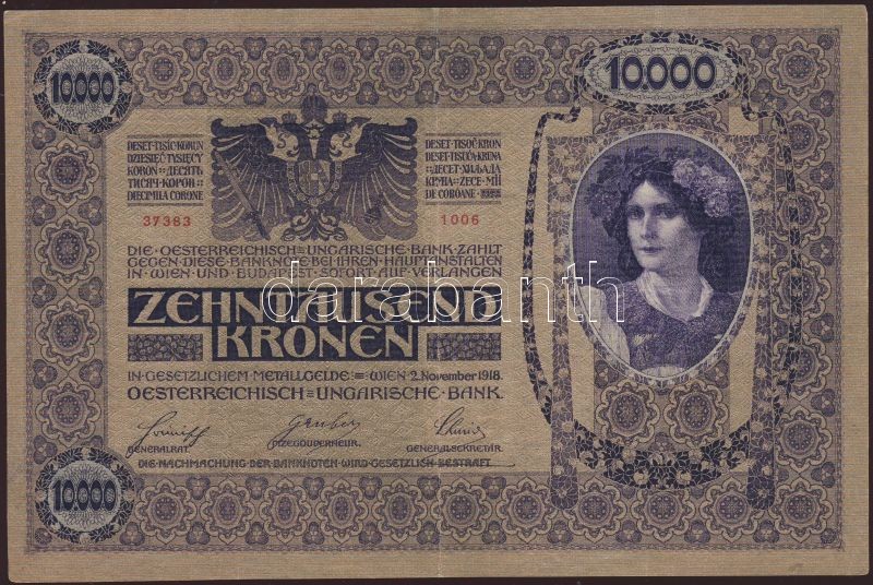 1918. 10.000K piros "Magyarország" körbélyegzővel T:II https://www.darabanth.com/hu/76-Gyorsarveres/76.0/Numizmatika/Osztrakmagyar-magyar-es-magyar-vonatkozasu-bankjegyek~207/1918-10000K-piros-Magyarorszag-korbelyegzovel-TII~II152511