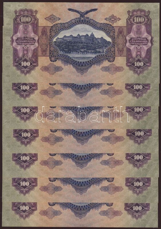 Leírás: 1930. 100P (7x) egymásutáni sorszámokkal T:I
