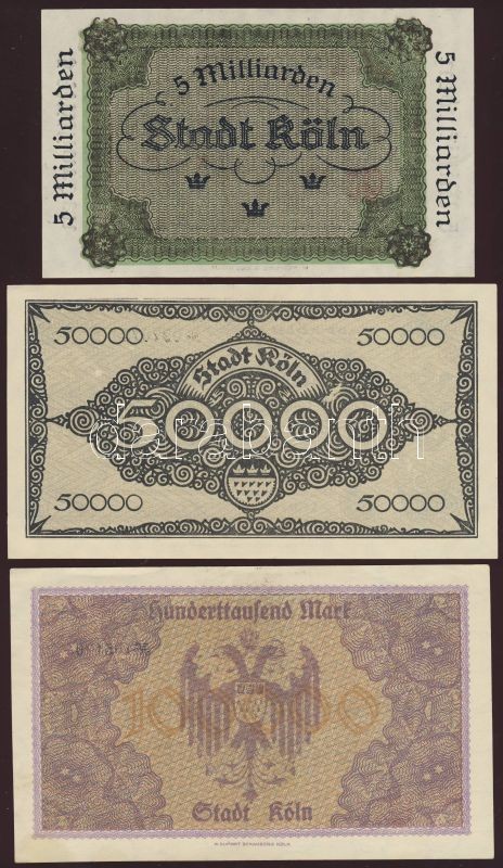 Leírás: Német Birodalom/Weimar/Köln 1923. 50.000M, 100.000M, 500.000M (2x) egymásutáni sorszámokkal!, 200.000.000M, 5000.000.000M T:I,I- Összesen 6db!