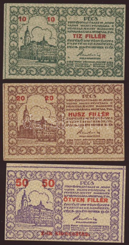 Leírás: Pécs 1919. 10f, 20f, 50f T:I