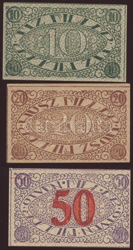 Pécs 1919. 10f, 20f, 50f T:I https://www.darabanth.com/hu/76-Gyorsarveres/76.0/Numizmatika/Papir-es-fem-szuksegpenzek-hadifogolypenzek-fantaziapenzek-penzhelyettesito-bonok~208/Pecs-1919-10f-20f-50f-TI~II152468