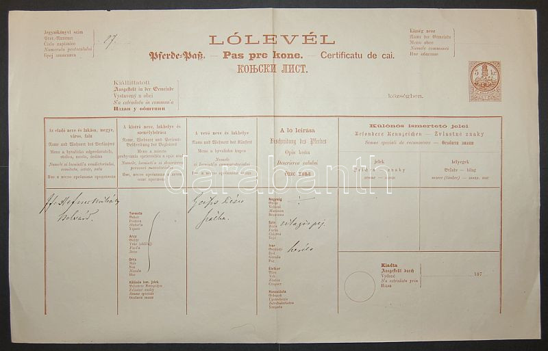 cca 1870 félig kitöltött lólevél https://www.darabanth.com/hu/77-Gyorsarveres/77.0/Festmeny-mutargy-papirregiseg-egyeb/Okmany-Documents~272/cca-1870-felig-kitoltott-lolevel~II153545