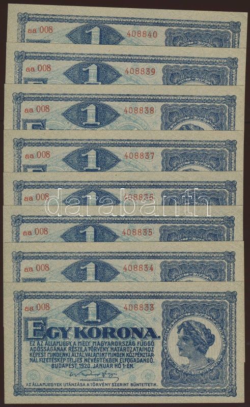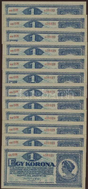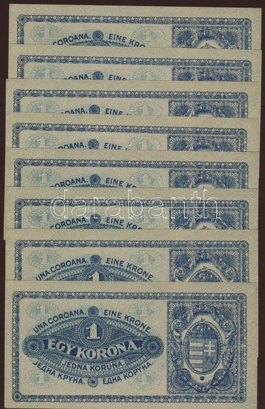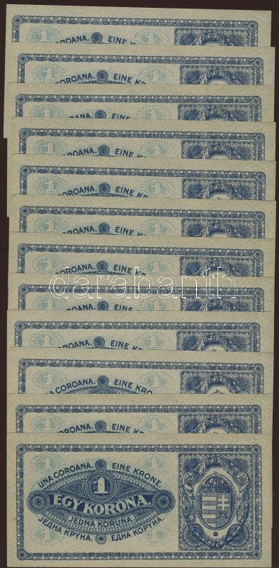 Leírás: 1920. 1K (20x) egymásutáni sorszámokkal "sorozatszámok és számok" erősen ferdén nyomva T:I
