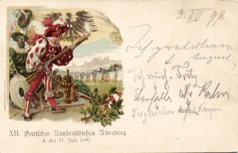 1897 Nürnberg Schützenfest Litho https://www.darabanth.com/hu/8-Nagyaukcio/8.1/Kulfoldi-kepeslapok/Nemetorszag-Germany~2020/1897-Nurnberg-Schutzenfest-Litho~II208559