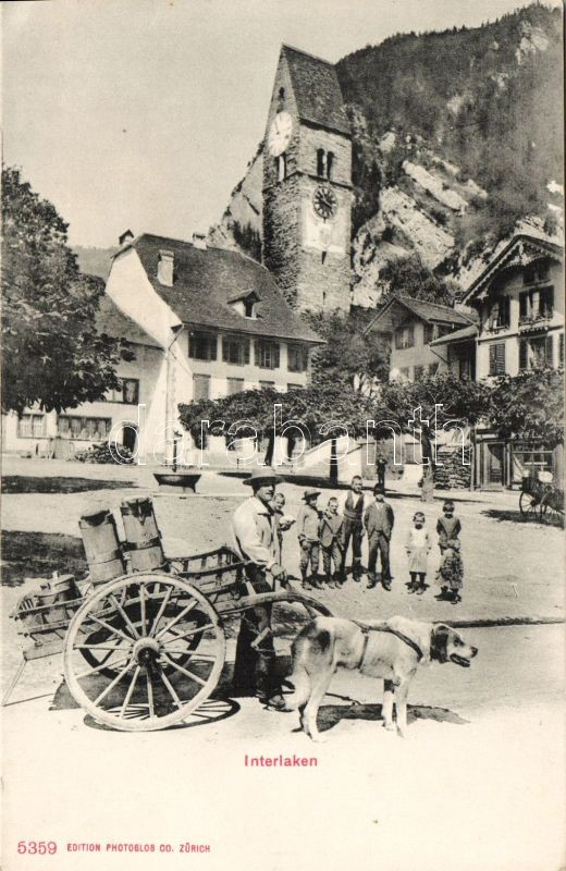 Interlaken with dog-carriage https://www.darabanth.com/hu/8-Nagyaukcio/8.1/Kulfoldi-kepeslapok/Svajc-Switzerland~2036/Interlaken-with-dog-carriage~II210663