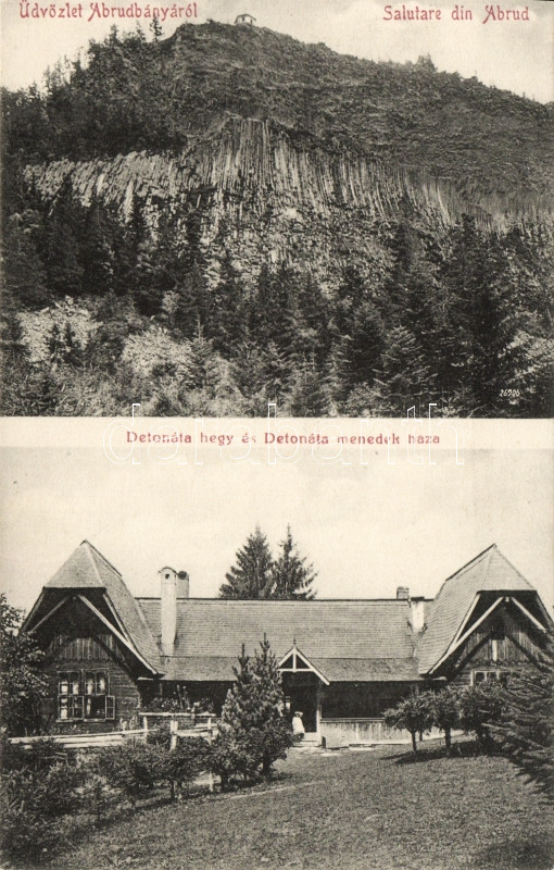 Abrudbánya Detonata-hill, turist house https://www.darabanth.com/hu/8-Nagyaukcio/8.1/Magyar-kepeslapok/Erdely-Transylvania~1959/Abrudbanya-Detonata-hill-turist-house~II211978