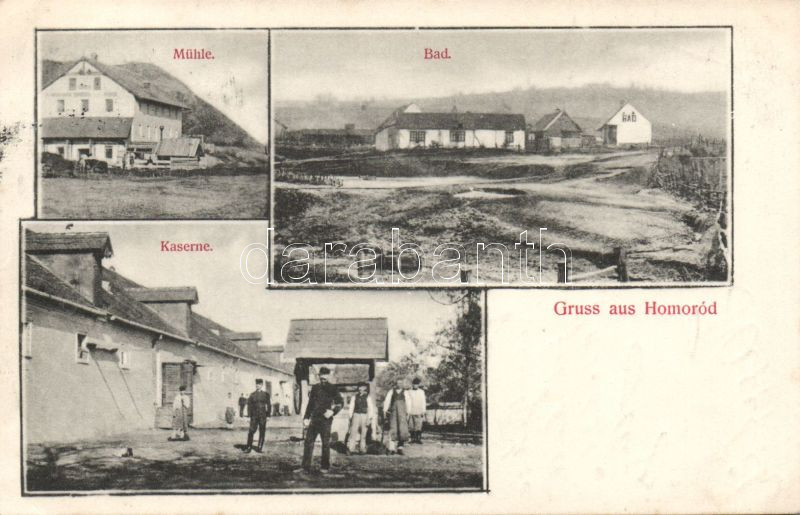 Homoród Military-barracks, Mill, Bath https://www.darabanth.com/hu/8-Nagyaukcio/8.1/Magyar-kepeslapok/Erdely-Transylvania~1959/Homorod-Military-barracks-Mill-Bath~II206840