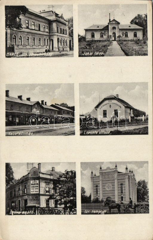 Barcs with Synagogue, railway-station, hotel (EM) https://www.darabanth.com/hu/8-Nagyaukcio/8.1/Motivum-kepeslapok/Judaika-Judaica~2101/Barcs-with-Synagogue-railway-station-hotel-EM~II198961