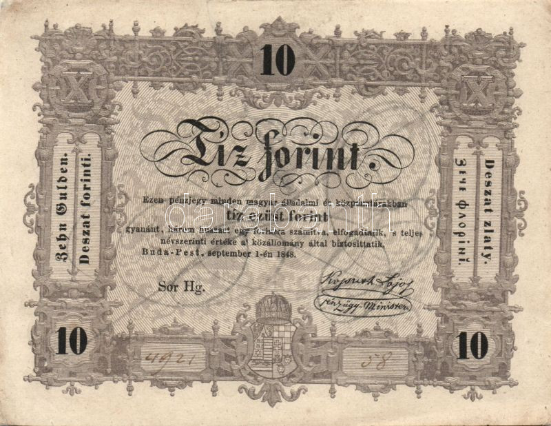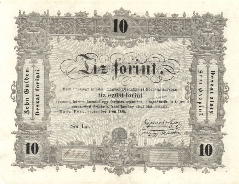 1848. 10Ft "Kossuth bankó" (3x) mindhárom kézi áthúzásokkal érvénytele... https://www.darabanth.com/hu/80-Gyorsarveres/80.0/Numizmatika/Osztrakmagyar-magyar-es-magyar-vonatkozasu-bankjegyek-Austro-hungarian-hungarian-and~700/1848-10Ft-Kossuth-banko-3x-mindharom-kezi-athuzasokkal-ervenytelenitve-Trestauralt~II165788