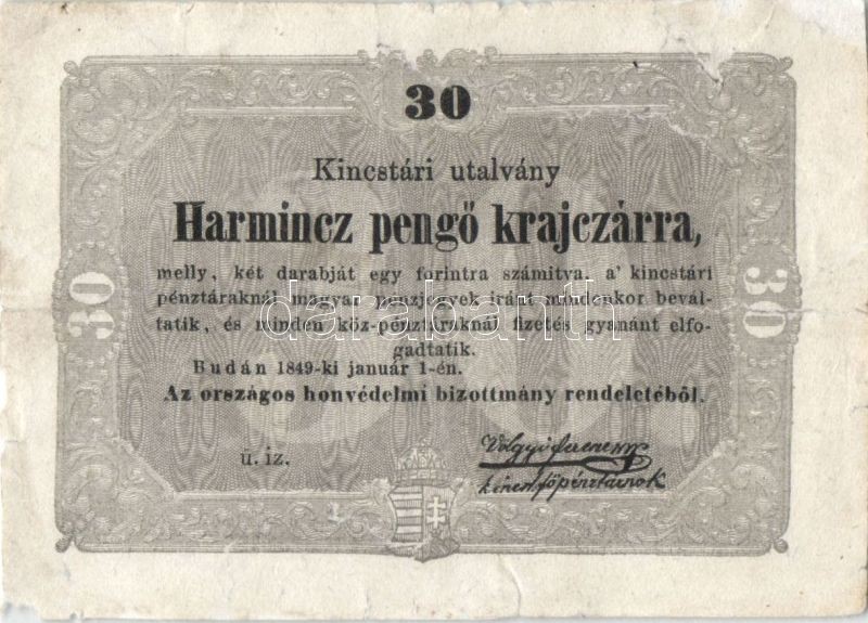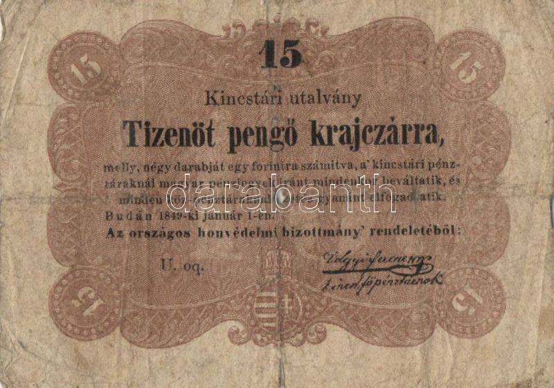 1849. 15kr + 30kr "Kossuth bankó" T:IV https://www.darabanth.com/hu/80-Gyorsarveres/80.0/Numizmatika/Osztrakmagyar-magyar-es-magyar-vonatkozasu-bankjegyek-Austro-hungarian-hungarian-and~700/1849-15kr-plus-30kr-Kossuth-banko-TIV~II165680