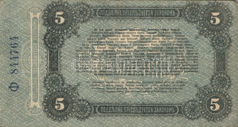 Leírás: Orosz Polgárháború/ Ukrajna és Krím/ Ogyessza 1917. 5R 3klf színvariáns T:II