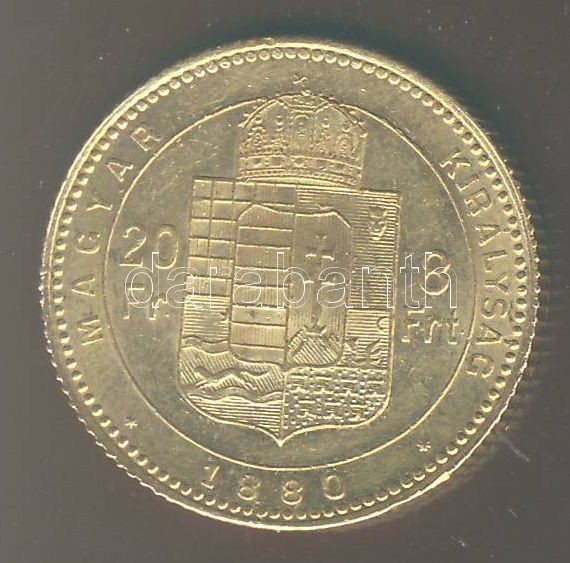 1880. 8Ft/20Fr Au 6,452g T:2 https://www.darabanth.com/hu/82-Gyorsarveres/82.0/Numizmatika/Kulfoldi-es-magyar-arany-es-platinapenzek-ezust-es-aranyekszerek~249/1880-8Ft20Fr-Au-6-452g-T2~II173926