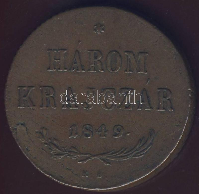 1849NB 3kr "Szabadságharc" T:3+ https://www.darabanth.com/hu/82-Gyorsarveres/82.0/Numizmatika/Magyar-es-magyar-verdejelu-fem-es-ezustpenzek-a-kozepkortol-napjainkig~254/1849NB-3kr-Szabadsagharc-T3plus~II172160