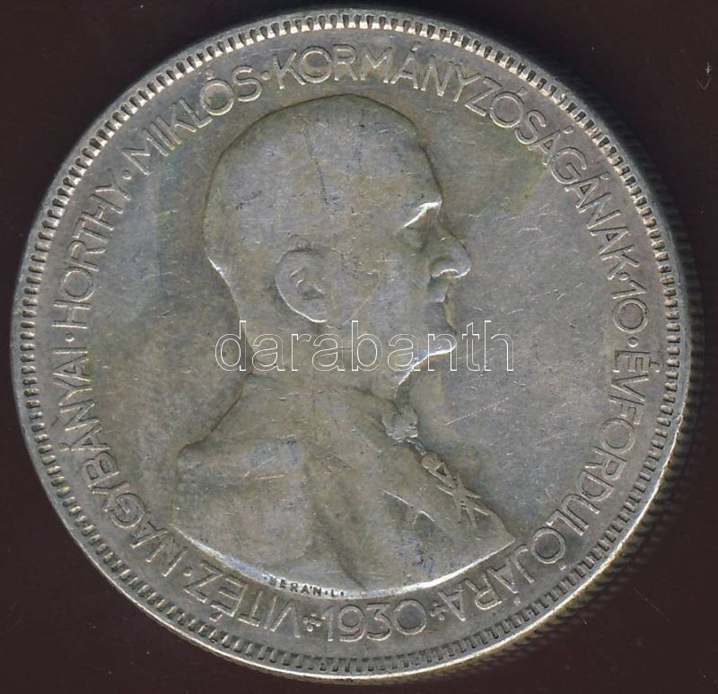 Leírás: 1930. 5P Ag "Horthy jobbra" T:3