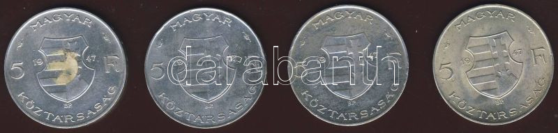 Leírás: 1947. 5Ft Ag (4x) "Kossuth" T:2,2/3 ph.