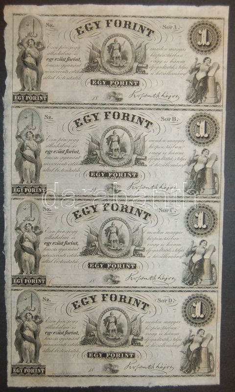 18.. Emigrációs "Kossuth bankók" 1Ft A,B,C,D összefüggő 4-es ívben T:I https://www.darabanth.com/hu/82-Gyorsarveres/82.0/Numizmatika/Osztrakmagyar-magyar-es-magyar-vonatkozasu-bankjegyek~248/18-Emigracios-Kossuth-bankok-1Ft-A-B-C-D-osszefuggo-4-es-ivben-TI~II166109