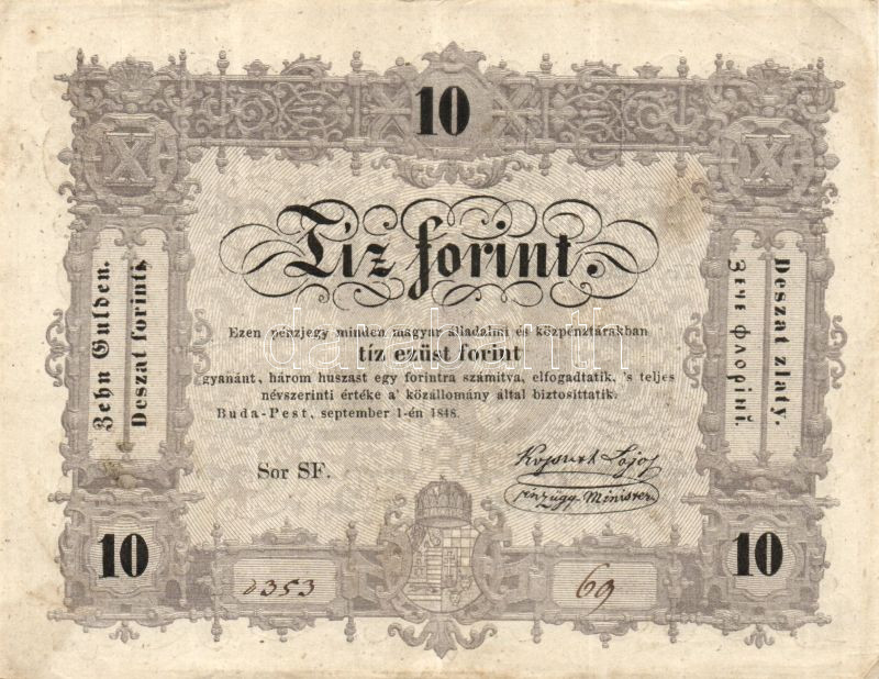 Leírás: 1848. 10Ft "Kossuth bankó" T:II/II-