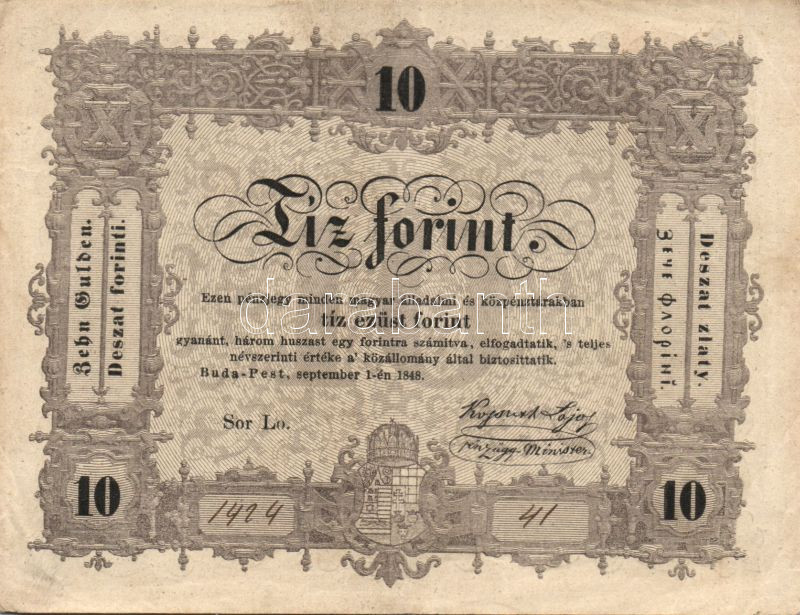 Leírás: 1848. 10Ft "Kossuth bankó" T:II/II-