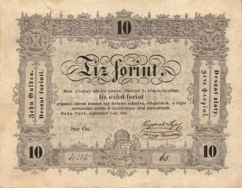 Leírás: 1848. 10Ft "Kossuth bankó" T:II/II-
