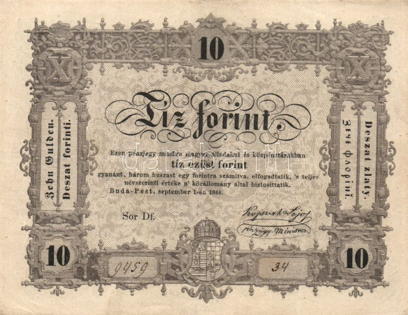 Leírás: 1848. 10Ft "Kossuth bankó" T:II/II-