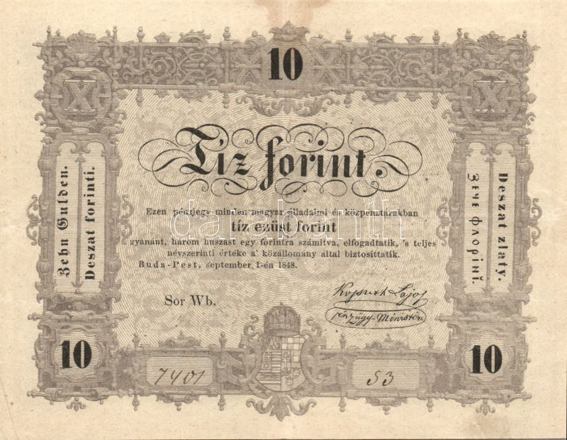 Leírás: 1848. 10Ft "Kossuth bankó" T:II/II-