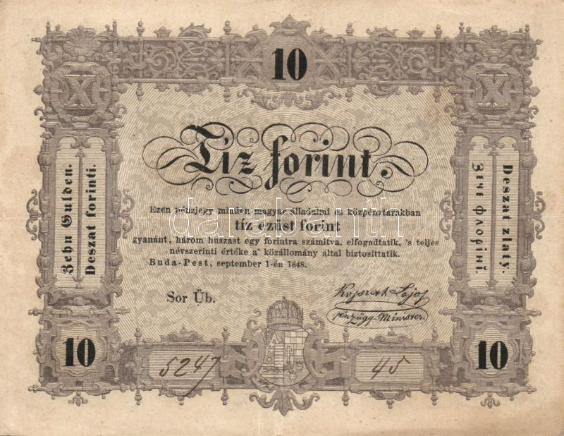 Leírás: 1848. 10Ft "Kossuth bankó" T:II/II-