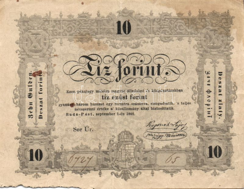 Leírás: 1848. 10Ft "Kossuth bankó" T:III/IV