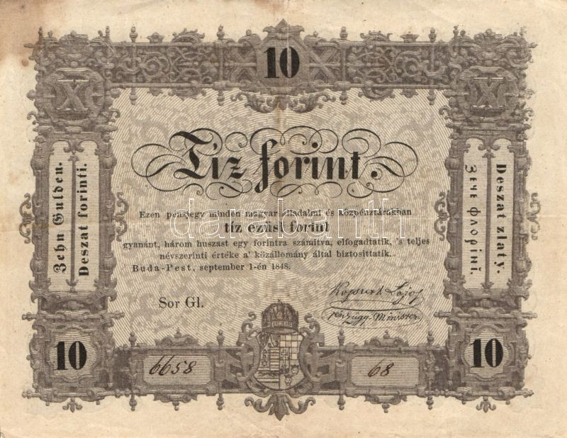 Leírás: 1848. 10Ft "Kossuth bankó" T:III/IV