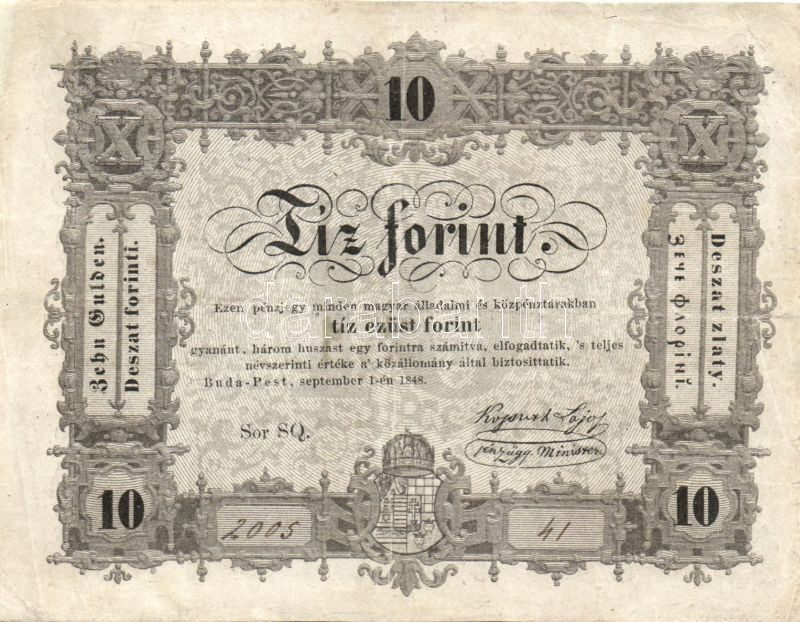 Leírás: 1848. 10Ft "Kossuth bankó" T:restaurált