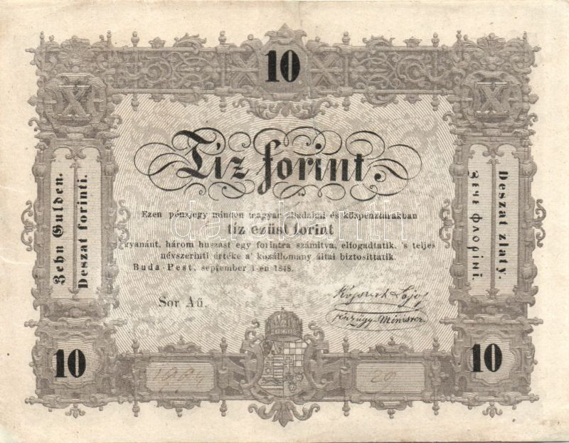 Leírás: 1848. 10Ft "Kossuth bankó" T:restaurált