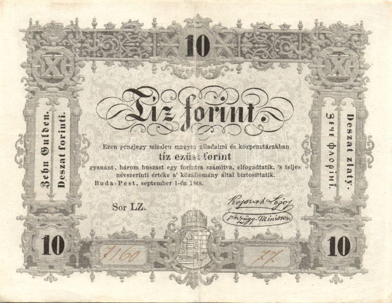 Leírás: 1848. 10Ft "Kossuth bankó" T:restaurált
