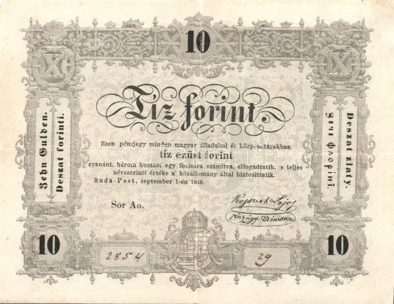 Leírás: 1848. 10Ft "Kossuth bankó" T:restaurált