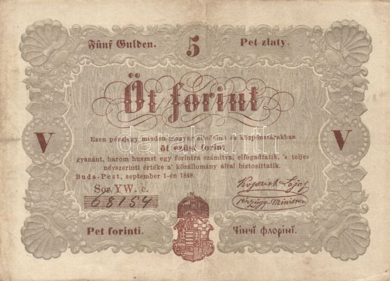 Leírás: 1848. 5Ft "Kossuth bankó" barna T:III+