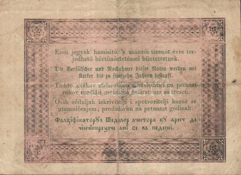 Leírás: 1848. 5Ft "Kossuth bankó" barna, előlapi címer balra tolódva, ismeretlen eredetű bélyegzők részleges lenyomata, hátlap oxidálódva T:II