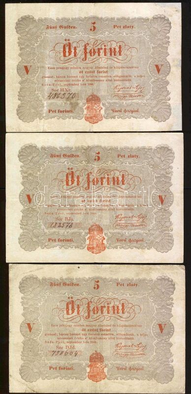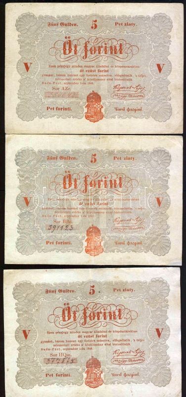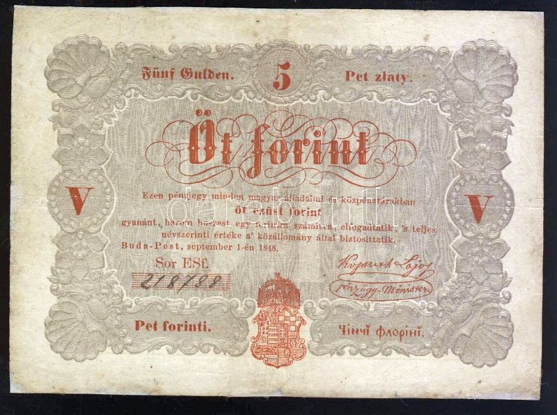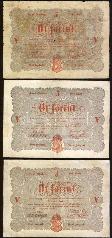 1848. 5Ft "Kossuth bankó" vörösbarna (10x) T:restaurált (9x), IV (1x) https://www.darabanth.com/hu/82-Gyorsarveres/82.0/Numizmatika/Osztrakmagyar-magyar-es-magyar-vonatkozasu-bankjegyek~248/1848-5Ft-Kossuth-banko-vorosbarna-10x-Trestauralt-9x-IV-1x~II172890