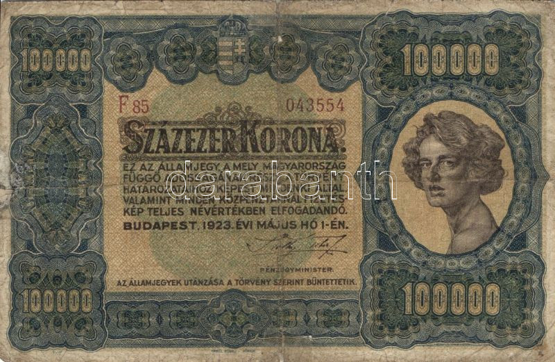 https://www.darabanth.com/hu/82-Gyorsarveres/82.0/Numizmatika/Osztrakmagyar-magyar-es-magyar-vonatkozasu-bankjegyek~248/1923-100000K-TIII-IV~II174068
