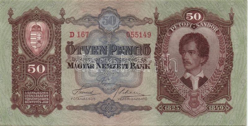Leírás: 1932. 50P (6x) benne közeli ugrású sorszámok T:I