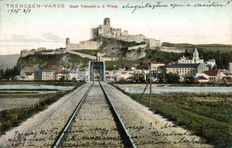 Trencsén with railway-bridga https://www.darabanth.com/hu/83-Gyorsarveres/83.0/Kepeslapok/Felvidek-Northern-Hungary~5054/Trencsen-with-railway-bridga~II175637