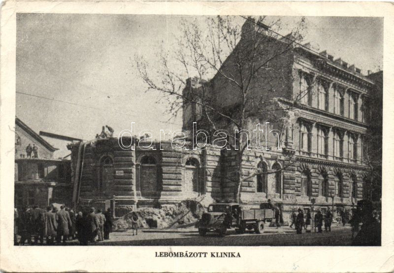 Budapest IX. lebombázott klinika (EB) https://www.darabanth.com/hu/83-Gyorsarveres/83.0/Kepeslapok/Magyarorszag-egyes-tetelek-Hungary-single-lots~5051/Budapest-IX-lebombazott-klinika-EB~II175096