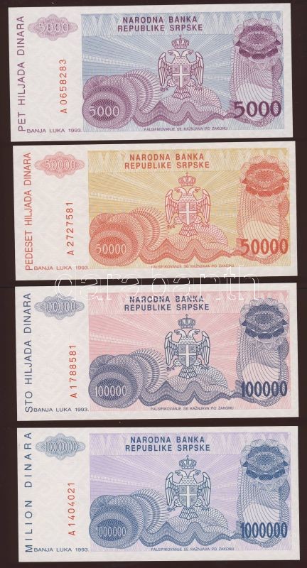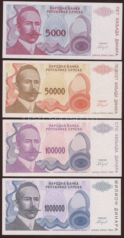 Leírás: Bosznia Hervegovina/Szerb Köztársaság 1993. 5000D, 50.000D, 100.000D, 1000.000D, 5000.000D, 10.000.000D, 500.000.000D T:I
