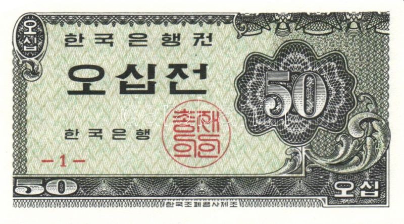 Dél-Korea 1962. 10J, 50J, 1W T:I (2x), I- (1x) + 1973-75. 500W, 1000W ... https://www.darabanth.com/hu/83-Gyorsarveres/83.0/Numizmatika/Kulfoldi-bankjegyek~5081/Del-Korea-1962-10J-50J-1W-TI-2x-I-1x-plus-1973-75-500W-1000W-TI-I-~II176887
