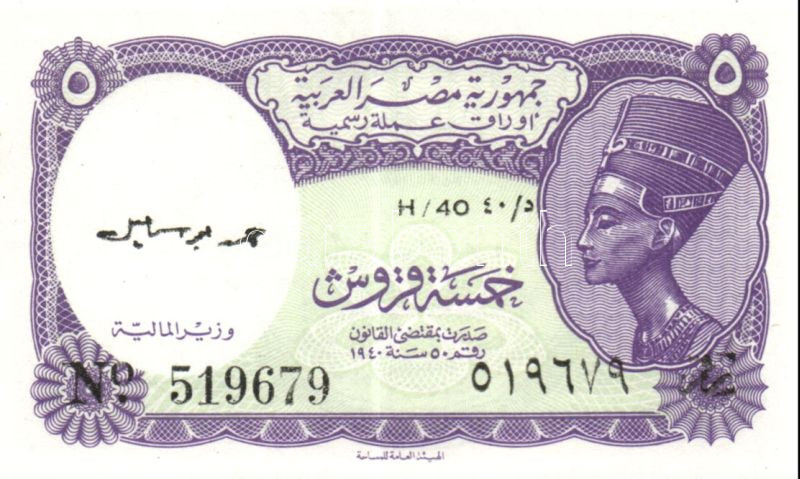 Egyiptom 1940(1971). 5P (2x) klf aláírással T:I https://www.darabanth.com/hu/83-Gyorsarveres/83.0/Numizmatika/Kulfoldi-bankjegyek~5081/Egyiptom-19401971-5P-2x-klf-alairassal-TI~II174690