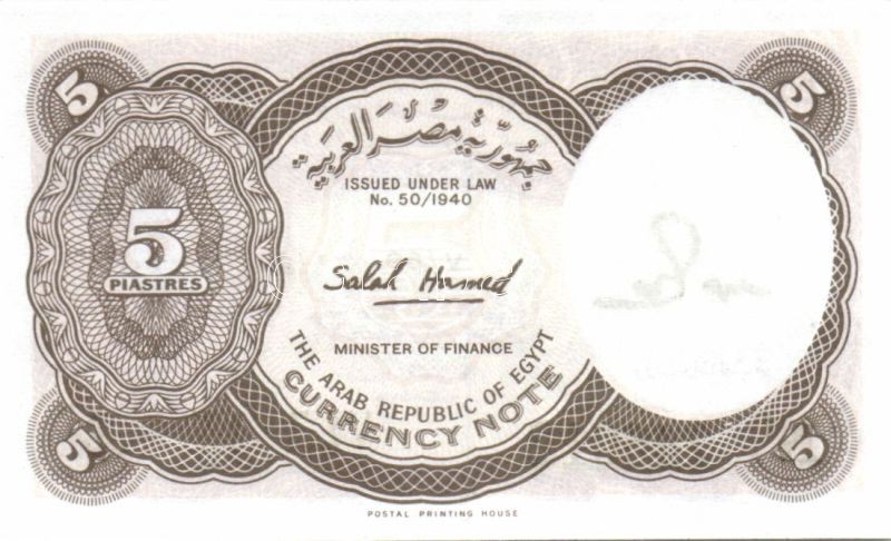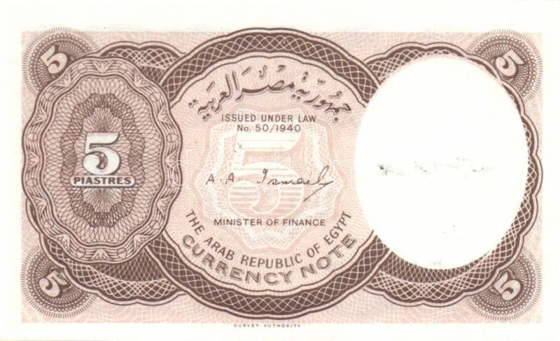 Leírás: Egyiptom 1940(1971). 5P (2x) klf aláírással T:I