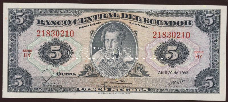 Ekvádor 1983.4.20. 5S T:I https://www.darabanth.com/hu/83-Gyorsarveres/83.0/Numizmatika/Kulfoldi-bankjegyek~5081/Ekvador-1983420-5S-TI~II174660