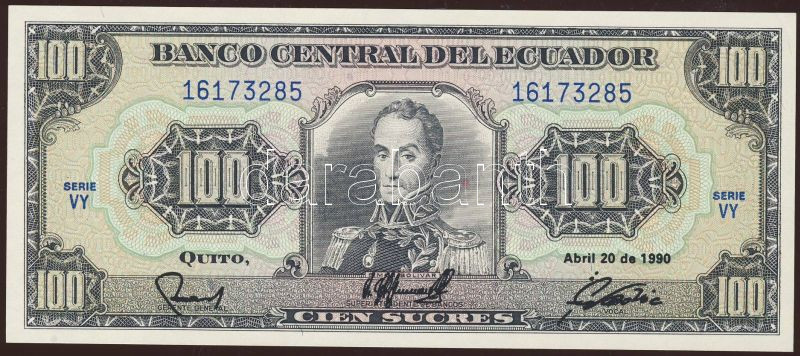 Ekvádor 1990.4.20. 100S T:I https://www.darabanth.com/hu/83-Gyorsarveres/83.0/Numizmatika/Kulfoldi-bankjegyek~5081/Ekvador-1990420-100S-TI~II174647