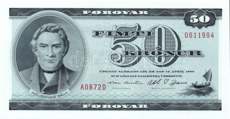 Feröer szigetek 1987. 50K, Sign.Bentsen-Dam T:I https://www.darabanth.com/hu/83-Gyorsarveres/83.0/Numizmatika/Kulfoldi-bankjegyek~5081/Feroer-szigetek-1987-50K-SignBentsen-Dam-TI~II174554