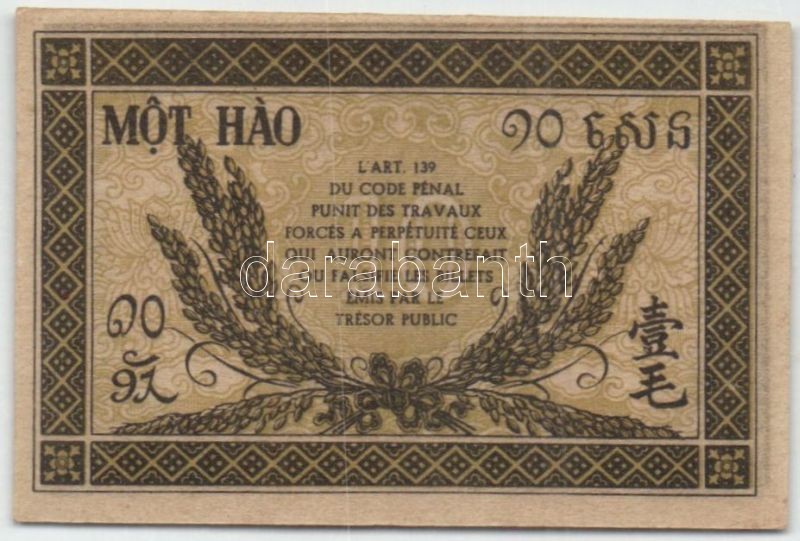 Francia Indokína 1942. 10c T:I https://www.darabanth.com/hu/83-Gyorsarveres/83.0/Numizmatika/Kulfoldi-bankjegyek~5081/Francia-Indokina-1942-10c-TI~II174595