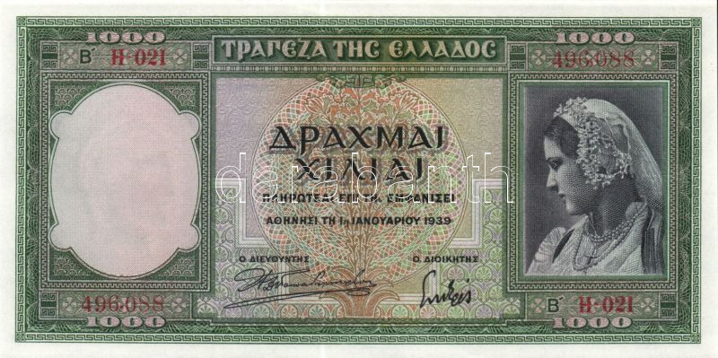 Görögország 1939. 1000Dr T:I https://www.darabanth.com/hu/83-Gyorsarveres/83.0/Numizmatika/Kulfoldi-bankjegyek~5081/Gorogorszag-1939-1000Dr-TI~II174715