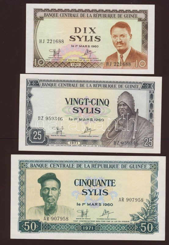 Guinea 1971. 10S, 25S, 50S, 100S teljes sor! T:I https://www.darabanth.com/hu/83-Gyorsarveres/83.0/Numizmatika/Kulfoldi-bankjegyek~5081/Guinea-1971-10S-25S-50S-100S-teljes-sor-TI~II174728